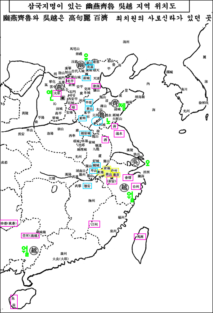 ② 유연제노와 오월에 고구려 백제 초기와 패망때 지명이 있는 것