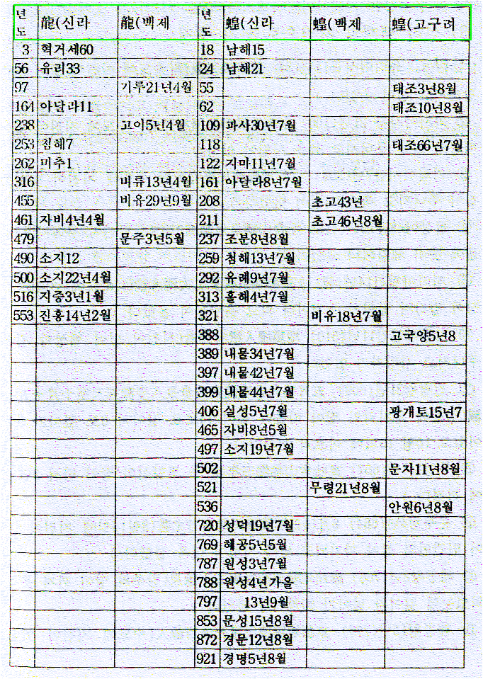 삼국사기에 나오는 "용(龍)과 메뚜기(황:蝗)의 기록"