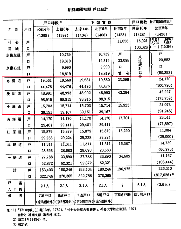 조선초기 충청, 전라 총인원이 20만이