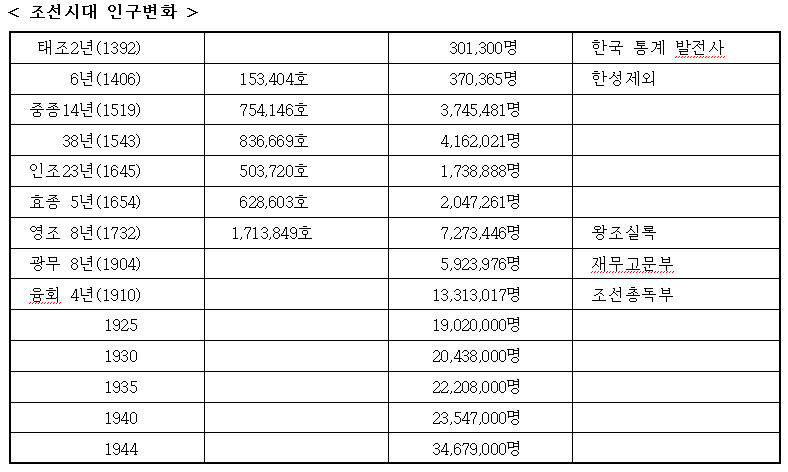 상식적으로 이해가 가지 않는 인구의 증감이나 사서에 기록되어 있는 대로 나열해 본다