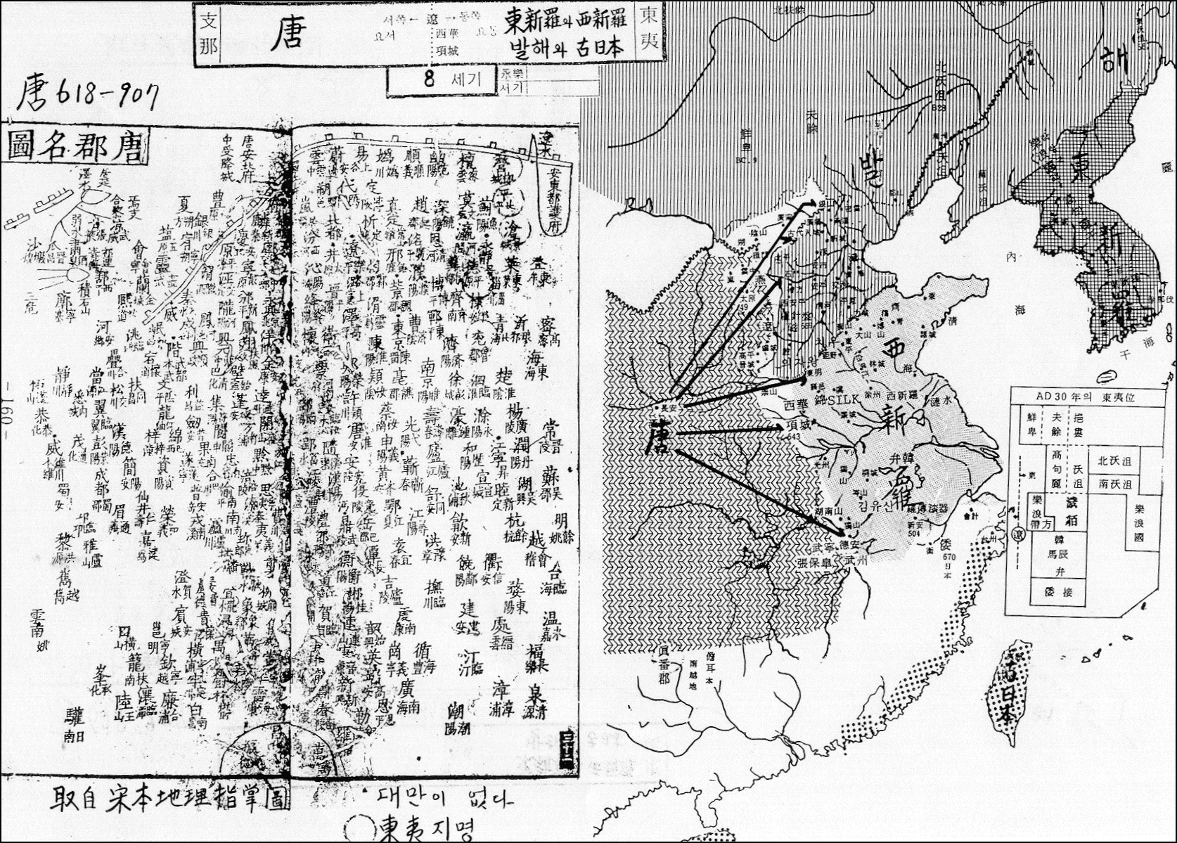 제목: < 고지도 26 > "당"과 "동신라와 서신라, 발해와 고일본" - 1