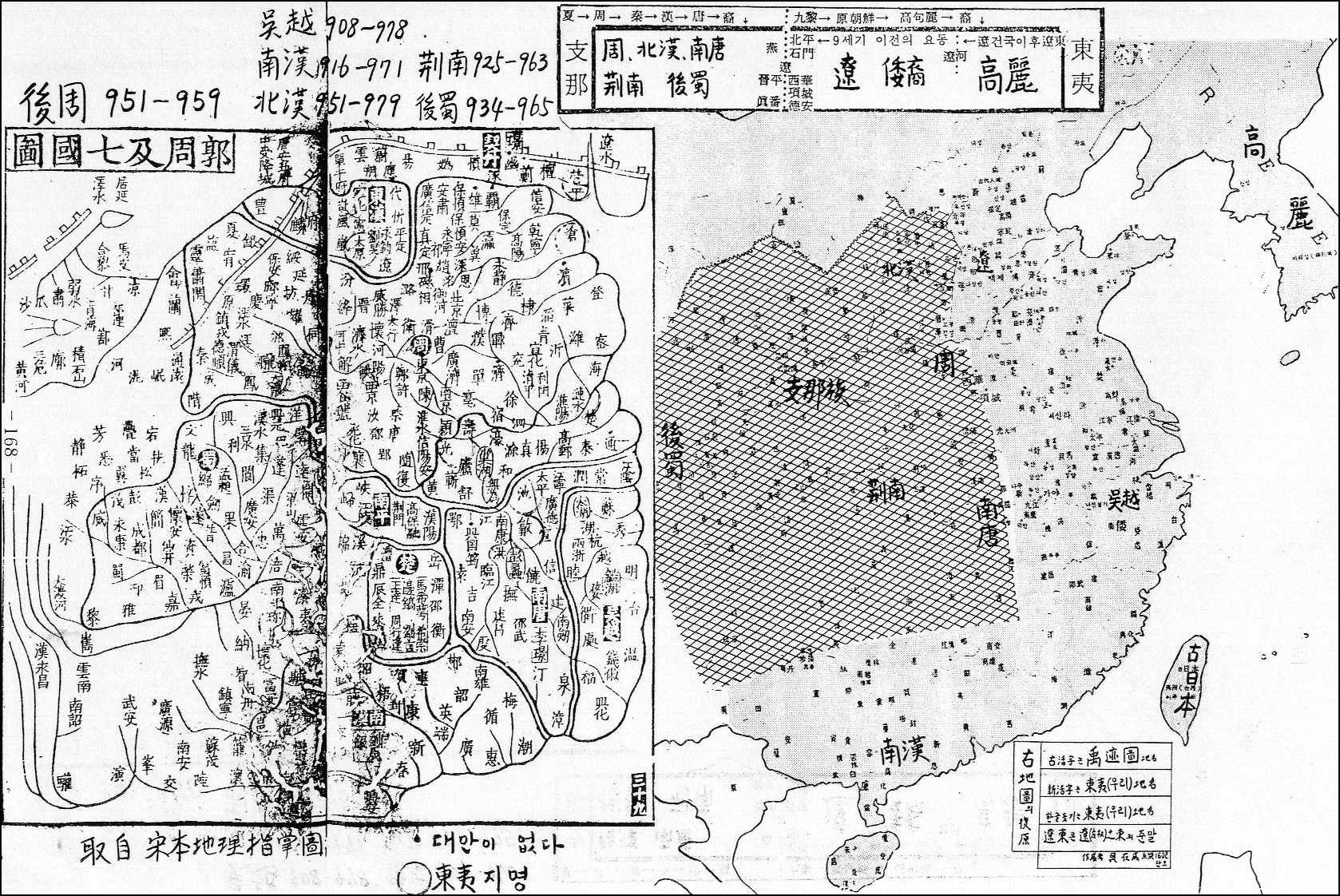 < 고지도 32 : 중국고지도 + 동이강역 추정도 > "후주, 북한, 남당, 형남 등"과 "요, 고려" 이지도 게시 목적은 중국고지도 및 동이강역추정도 소개입니다 소개이유는 역사 연구에 참고를 하시라는 의미입니다 감사합니다 ! < 송본지리지장도 > "후주, 북한, 남당, 형남 등"과 "요, 고려"
