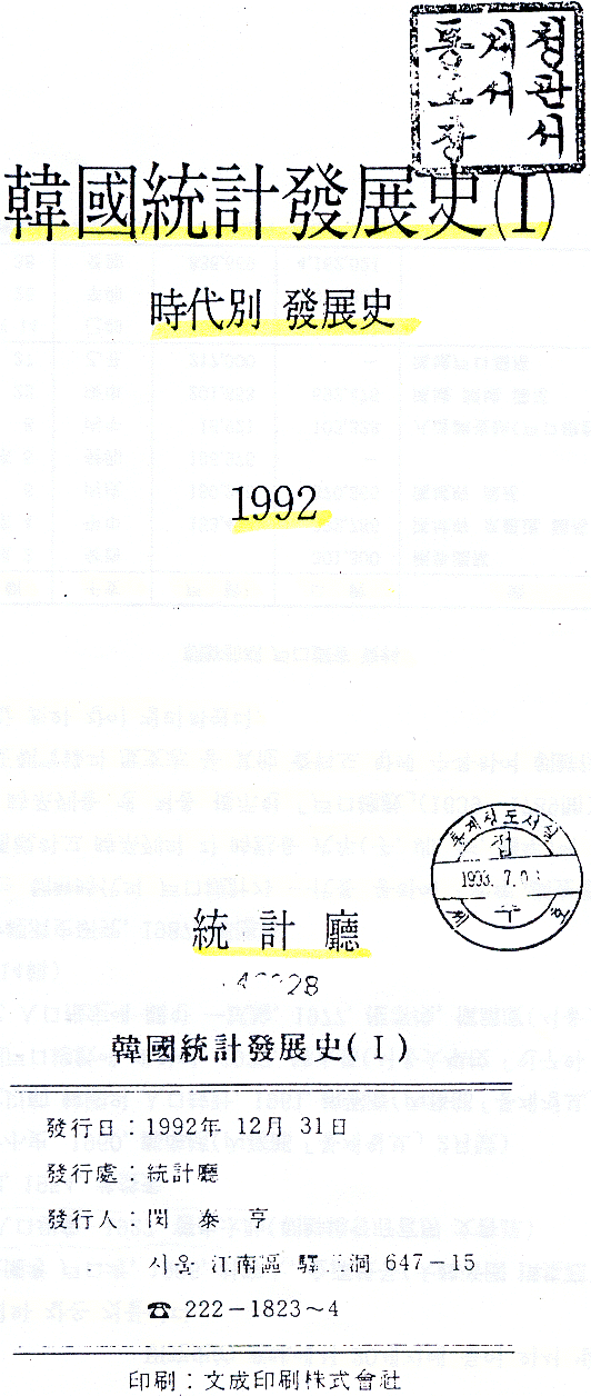 한국통계발전사(통계청발행)에 왕조실록등을
