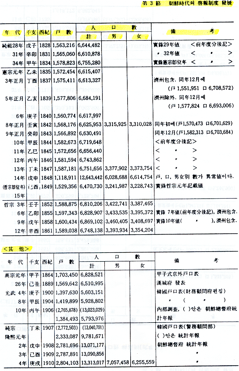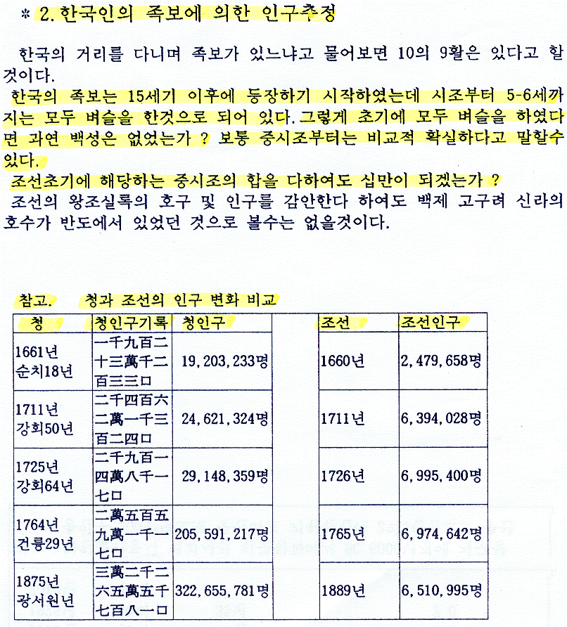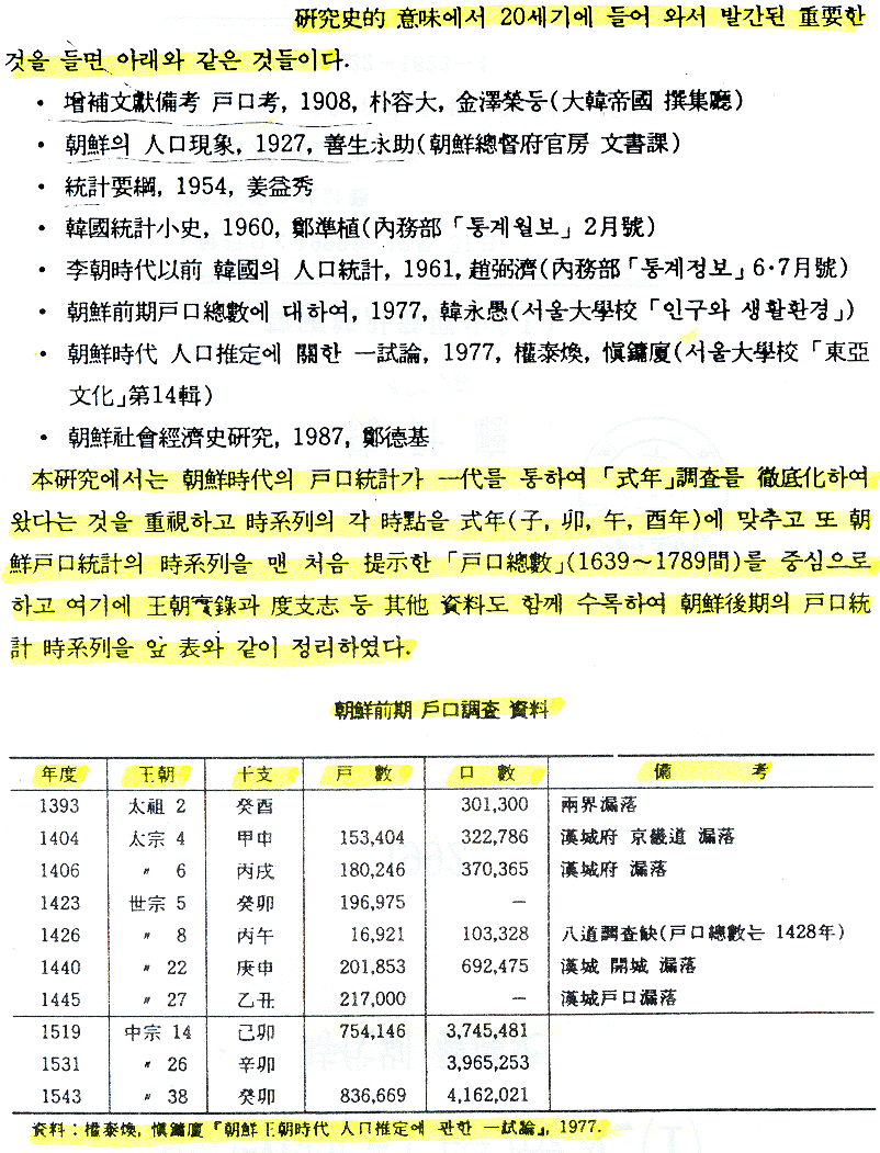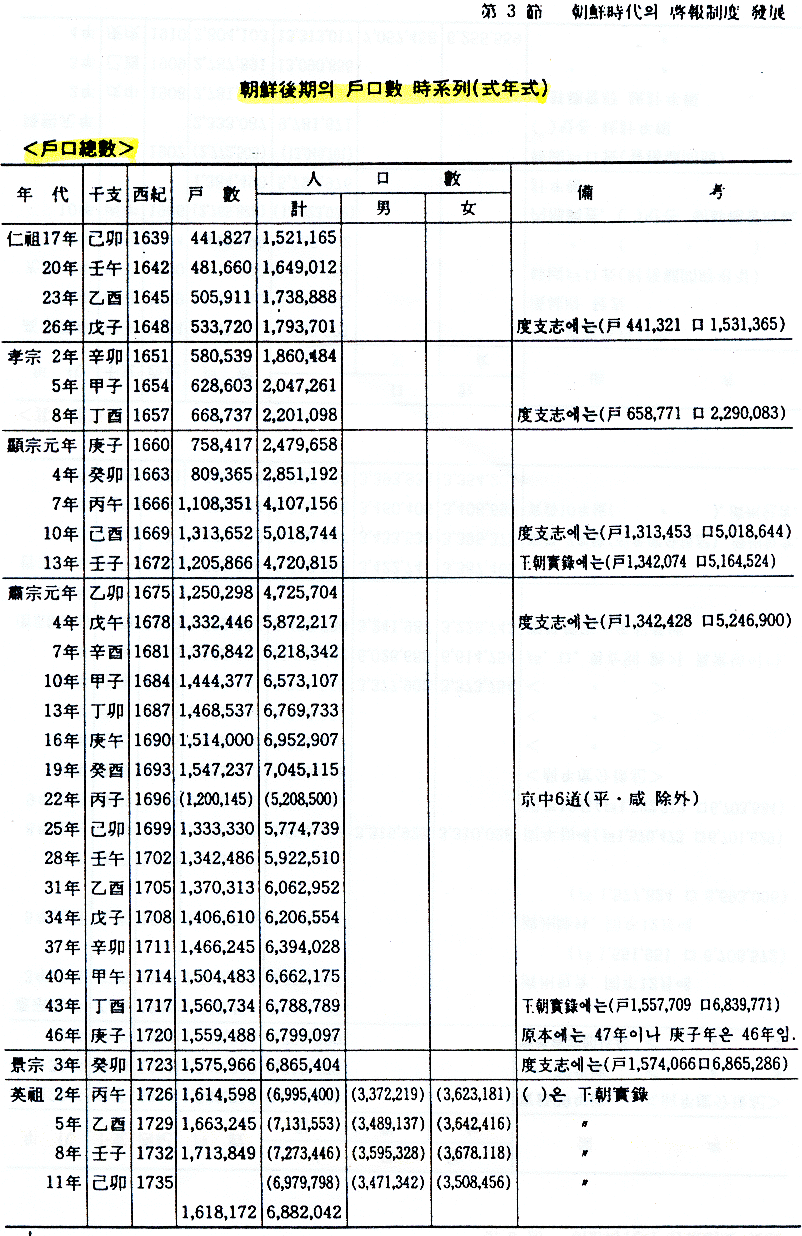 사람의 數 또는 家口의 數로 우리역사를 조명해 보겠다는 것은 그와 관련된 자료의 결핍으로 대단히 어렵다.