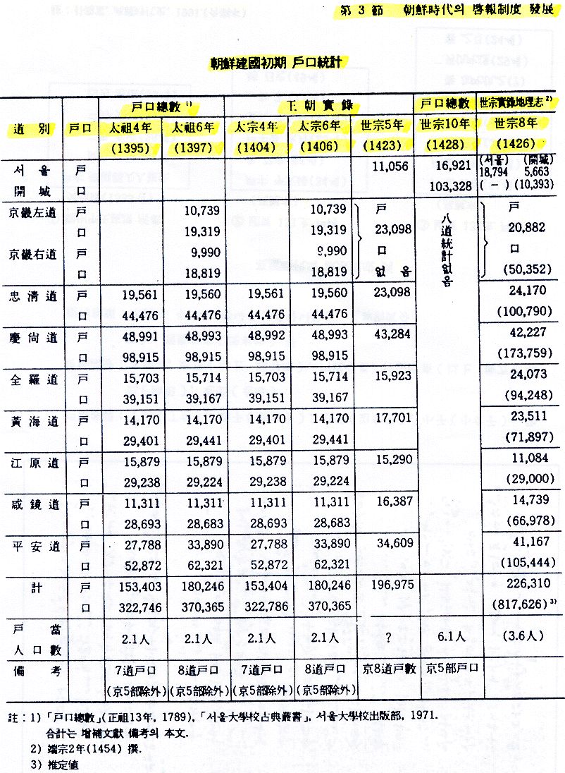이는 高麗人口가 조선초기 인구보다 많은 이유를 밝혀줄 사료의 가치가 있지 않겠는가 ?