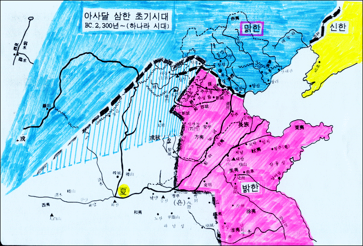 유왕기 선생님 홈페이지에 지도가 다시올려져 재게시합니다 궁금한점은 동사이트를 참고바랍니다 출처 : 유왕기 선생님 홈페이지, http://my.dreamwiz.com/hanbark2 < 아사달 - 삼한 초기시대 >
