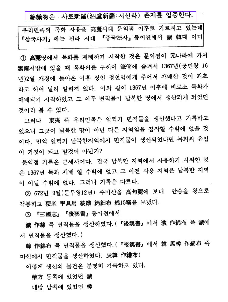 < 면직물은 서신라(사로신라) 존재를 입증한다 >