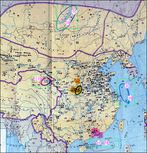 - 푸른네모 : 북해, 동해, 남해 - 바다가 아니라 지명입니다