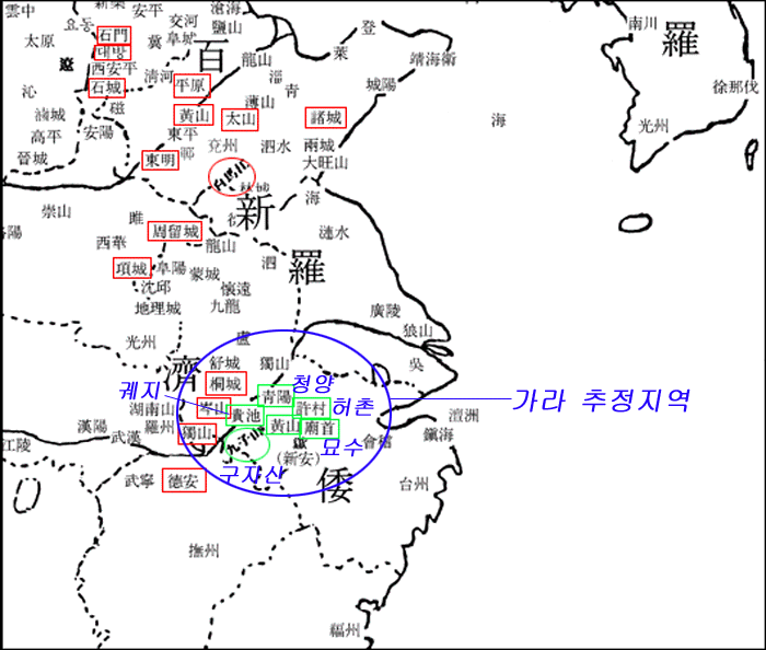 - 빨간네모 : 치, 청, 래, 해 - 백제본기에 나오는 병사 칠천 징발 장소입니다