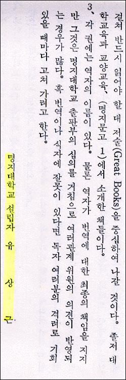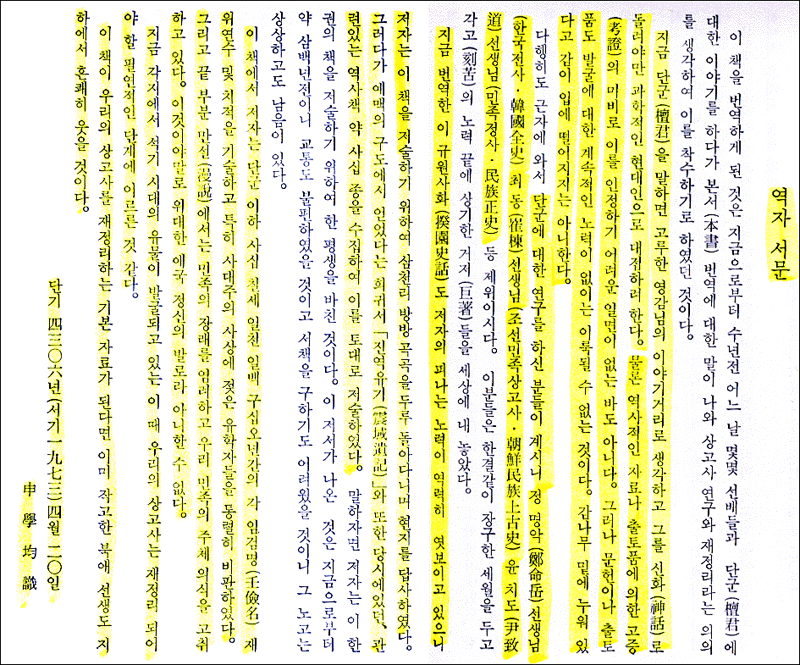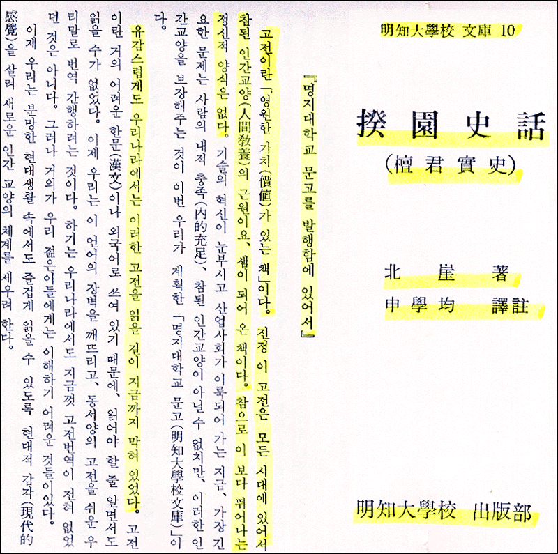 < 규원사화(단군실사) - (1) > 이내용을 소개하는 이유는 1975경에 명지대학교에서 교양서적으로 출판되어 교양서적으로 자연스레이 읽혀 졌으며, 자랑스런 고전으로 소개되었다는 점이 지금의 현실과 다르다 할 것이다 책의 서문의 내용이 무언가를 우리에게 많은 생각을 가지게 하는 것 같아 소개해 봅니다 < 명지대학교 설립자 유상근 >