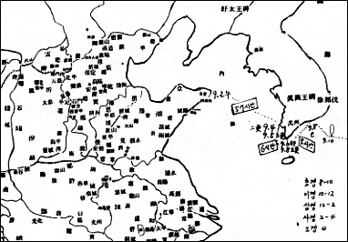 ② 9월 4일 21시 고이도 도착 (二更到 고이도) : 총 57시간정도 (2일9시간) 소요