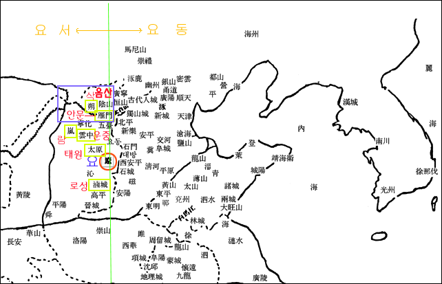 끝나는 삭, 안문의 동쪽을 요중심의 동쪽으로 표현한 것으로 볼수가 있을 것이다.