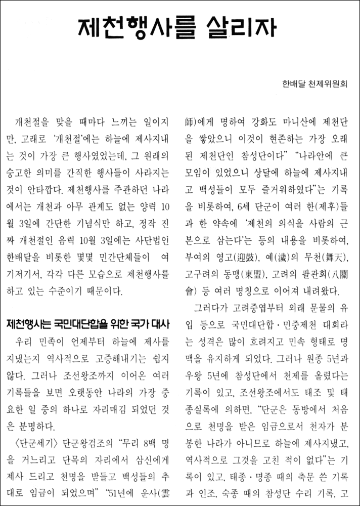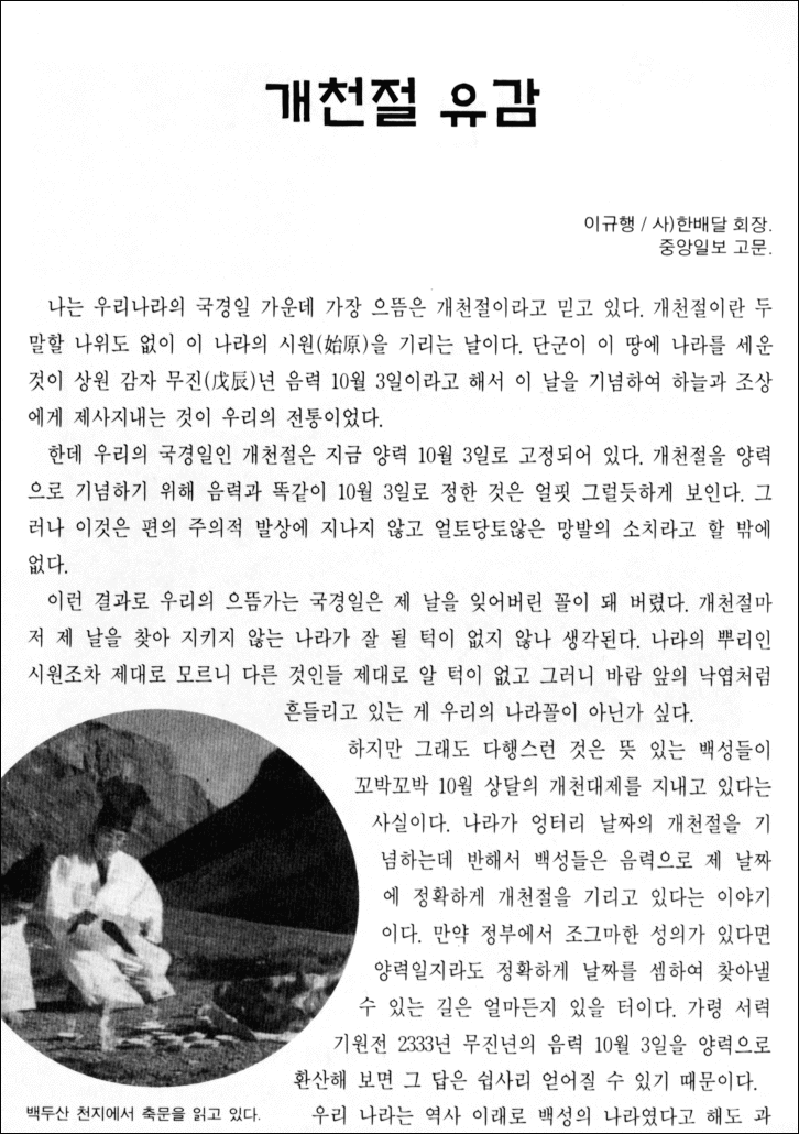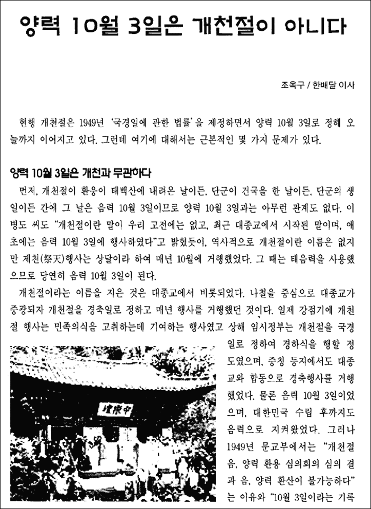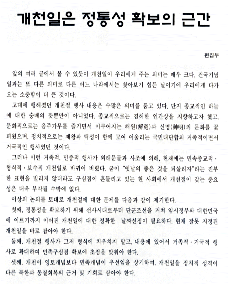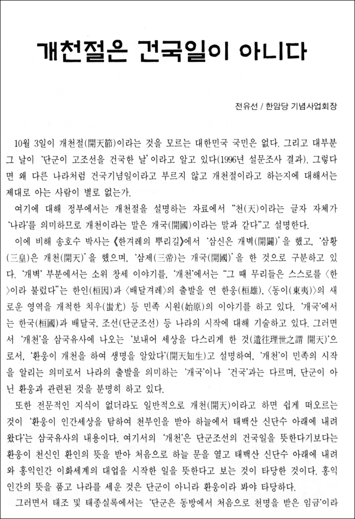 - 출처 : 한배달 2001년 11월호 (통권 66호) < 개천절 특집 : 왜 ! 개천(開天)인가 >