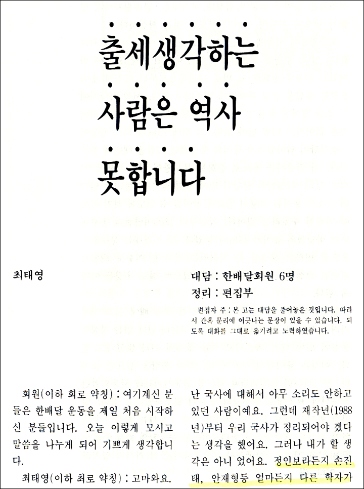 < 출세생각하는 사람은 역사 못합니다 - 최태영 >