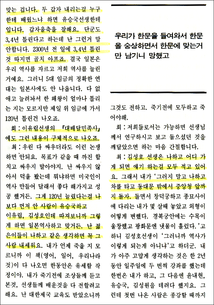 - "지들 스승(이병도)을 욕할