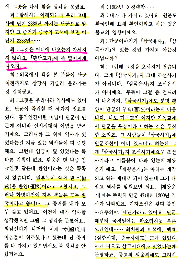 - 재야 : "단군은 실존의 역사이고 그 이전 한인, 한웅(구리국) 시대가
