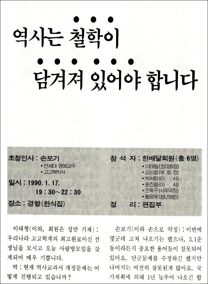< 역사는 철학이 담겨져 있어야 합니다 - 손보기