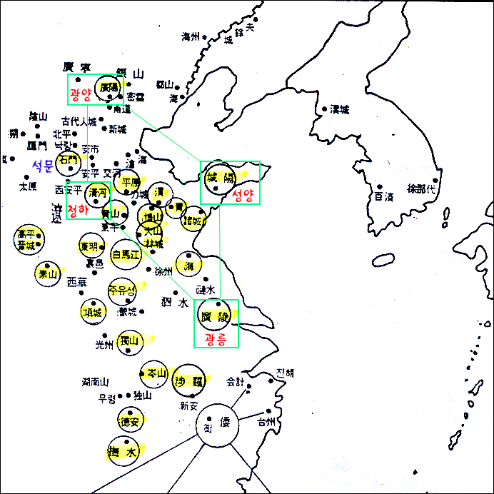 < 참 고 : 3국의 일식관측 지역 >