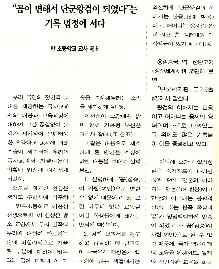 "곰이 변해서 단군왕검이 되었다"는 기록 법정에 서다 >