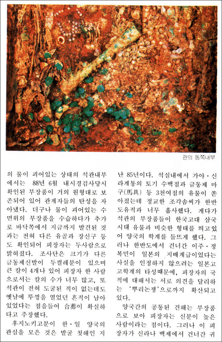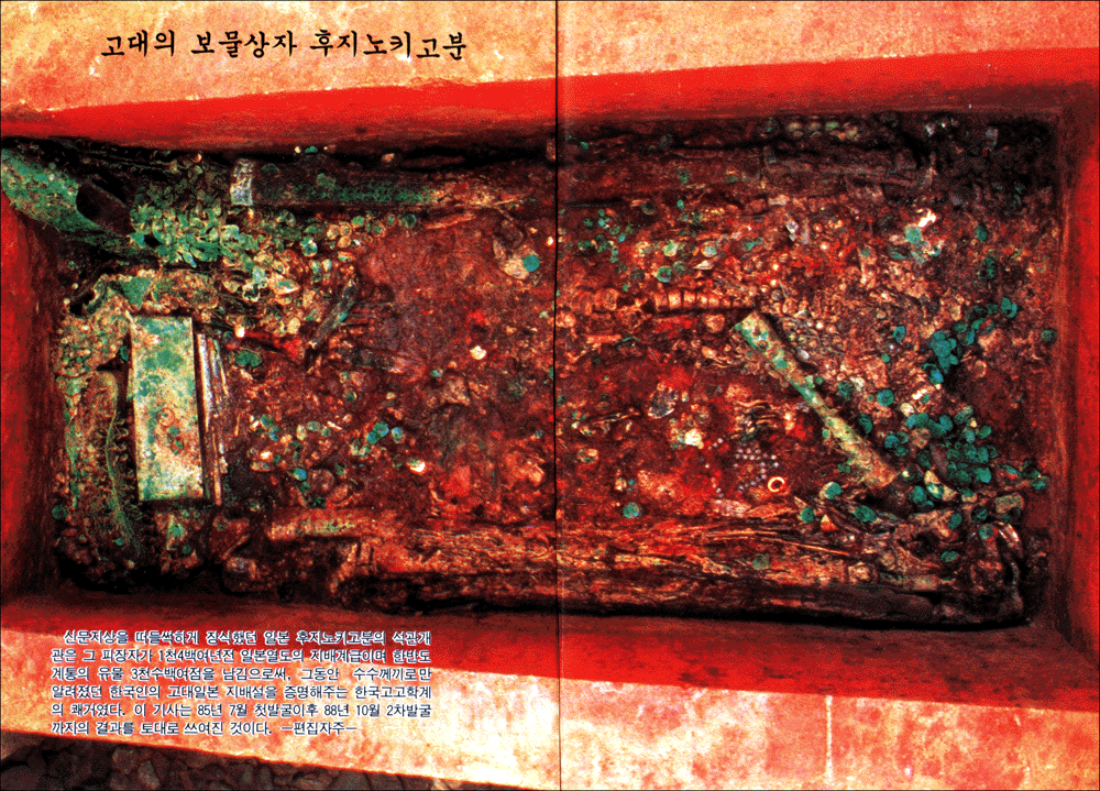 일본 천황은 백제계가 조상이라 말하고 방방곡곡 옛무덤을 발굴해도 어느하나 우리의 것과 다른게 없는 일본땅 단군도 신화라 하는 이땅과 달리 단군신화조작을 주도한 일본땅에는 오히려 단군신전이 당당히 남아 있습니다 아래 유물들을 보시고 여러분은 무슨 생각을 하실지 궁금합니다 이하 참고바랍니다 - 출처 : 한배달 1989년 3월호 < 고대의 보물상자 후지노키 고분 >